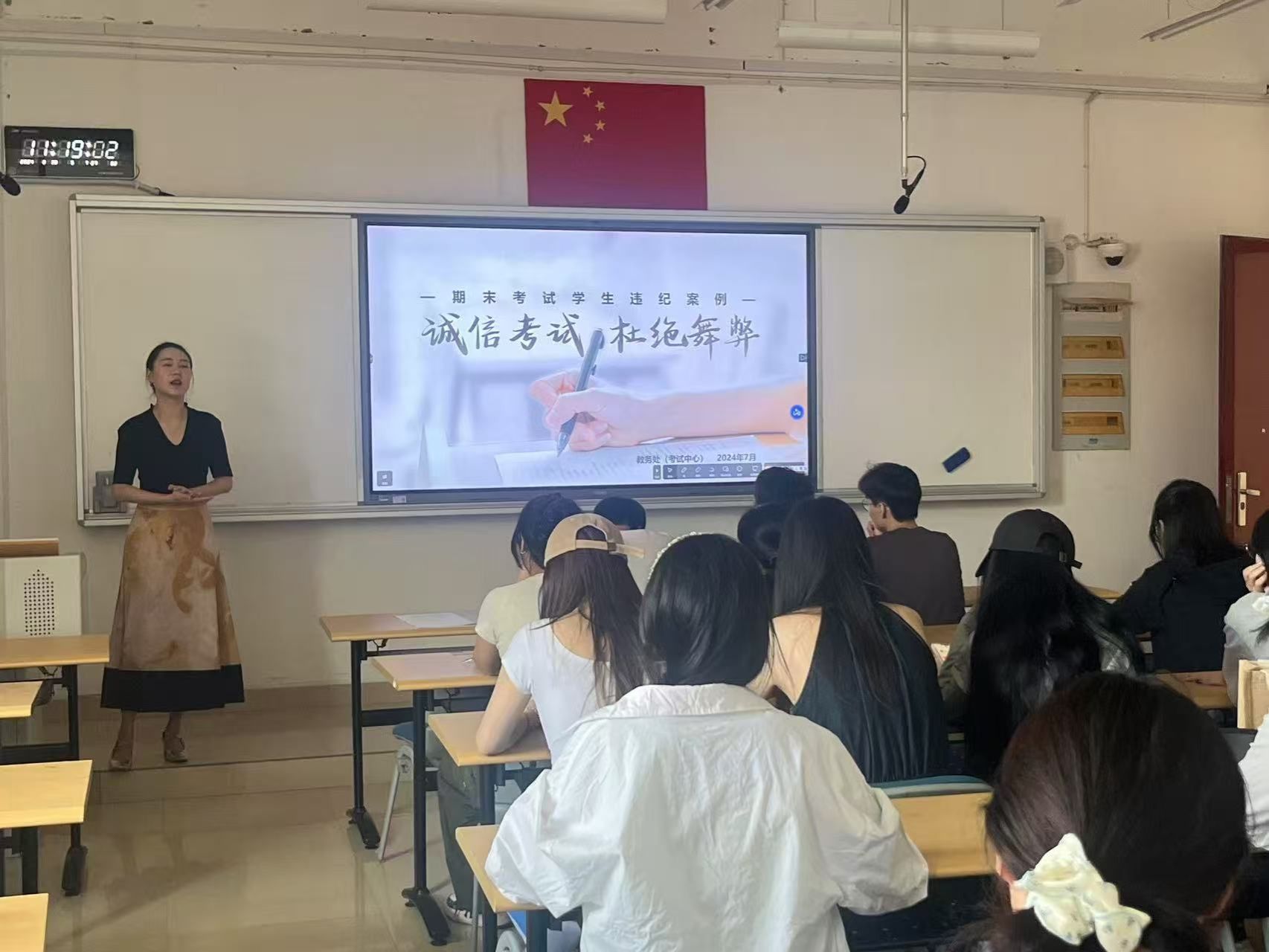 为进一步加强考风考纪建设,引导学生树立诚信考试观念,培养良好的道德品质,在期末考试即将来临之际,国际教育学院全体辅导员在班级中召开了“诚信考试,不负韶华”主题班会。