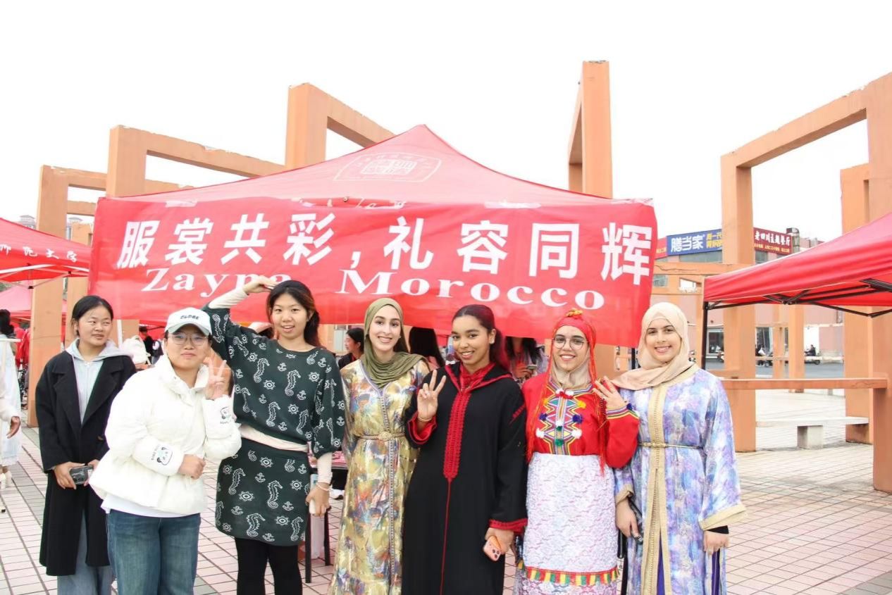 活动现场,10个特色展位沿着文化长廊有序排开,如同打开了一扇扇通往不同文明的窗口,每一处都独具风情、亮点纷呈。中国展位彰显传统文化底蕴:书法艺术展位挥毫传情,历史脉络展位再现文明历程,传统服饰展位展示华服魅力。外国展位尽显异域风情:歌舞表演点燃现场氛围,手工艺品展位展现异国匠心,茶饮文化展位交流特色饮品。