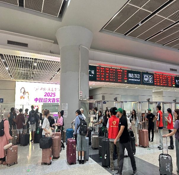 在南昌西站,身着统一红色马甲的志愿者们手持“欢迎来到江西科技师范大学”的欢迎牌,成为出站口一道亮丽的风景线。面对携带大件行李的新生,志愿者们主动上前帮忙搬运,甚至背着沉重的登山包一路护送至车站;遇到因语言不通而手足无措的新生,志愿者立即化身“翻译官”,协助解决交通、沟通等难题。顺利接到留学新生后,志愿者们引导他们坐上迎新专属大巴,并不时用英语与留学新生交流,用轻松的话题聊聊家乡美食、校园趣事,缓解他们初到异乡的紧张感,将他们安全送往学校。